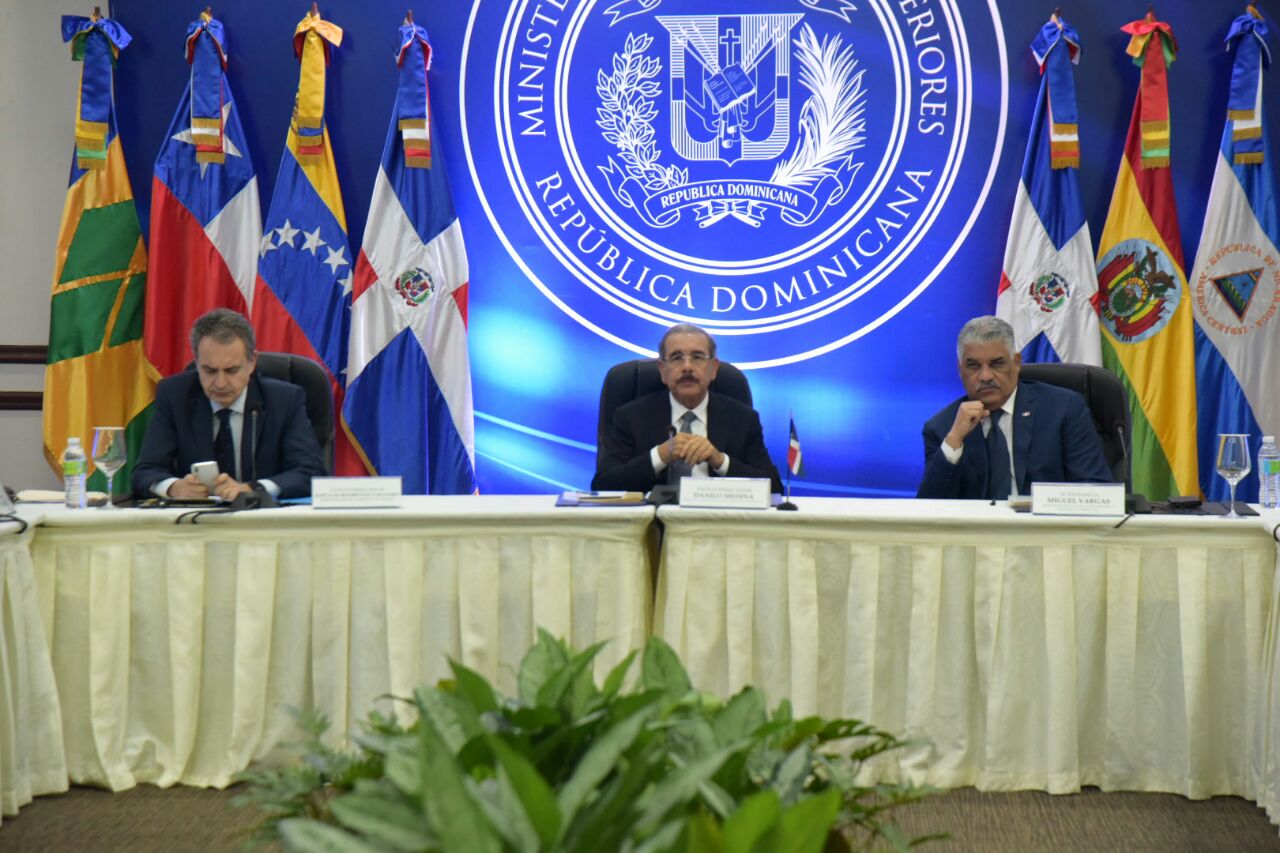 A las 9:00 de la noche, los representantes de la oposición salieron a deliberar a un salón de la Cancillería, y retornaron a la mesa del diálogo, bajo la mediación del presidente Danilo Medina, y el expresidente del gobierno español, José Luis Rodríguez Zapatero, 19 minutos después.