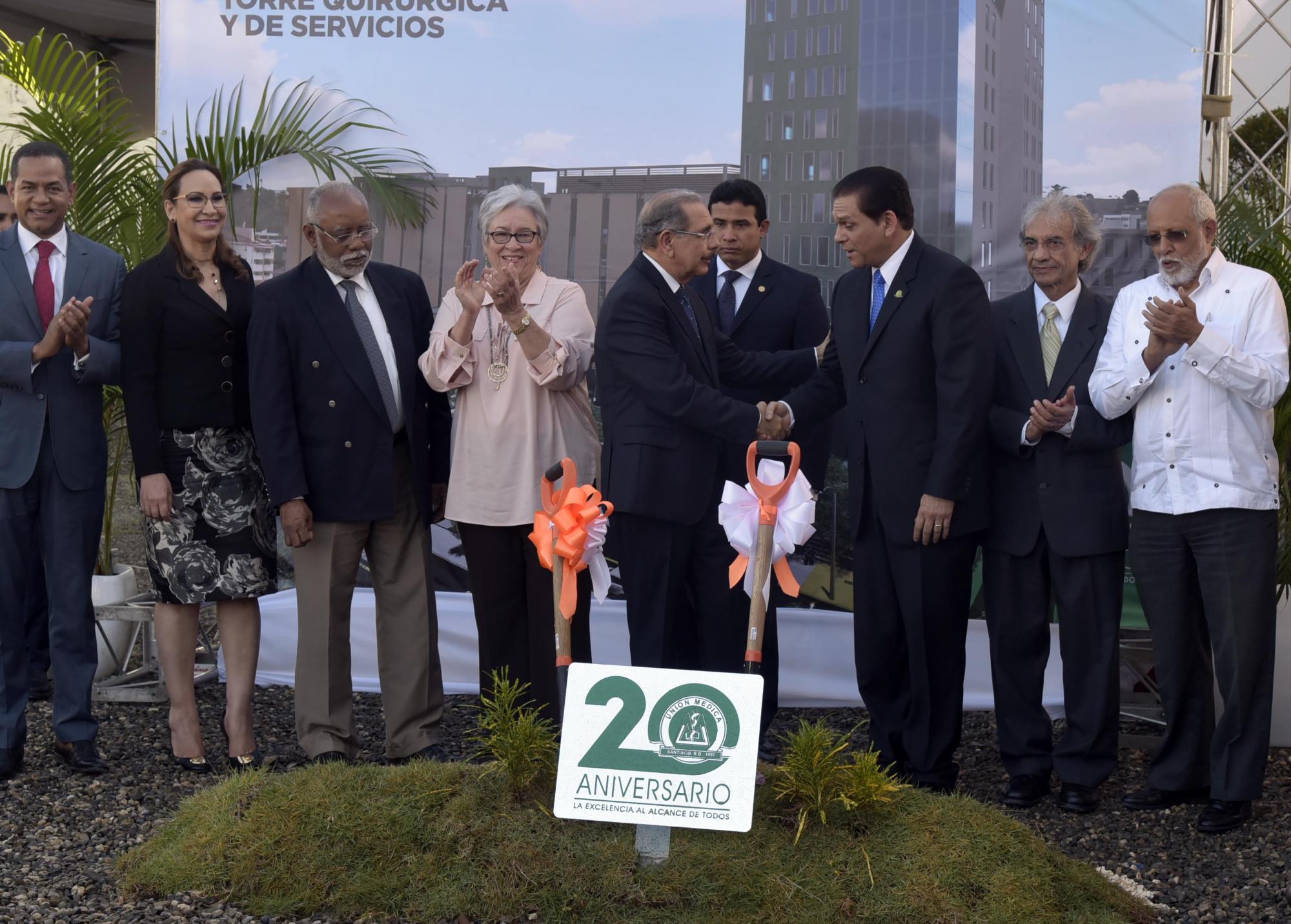 SANTIAGO. El presidente Danilo Medina dio el palazo que da inicio a la construcción de la nueva torre de la clínica Unión Médica del Norte, de esta ciudad.