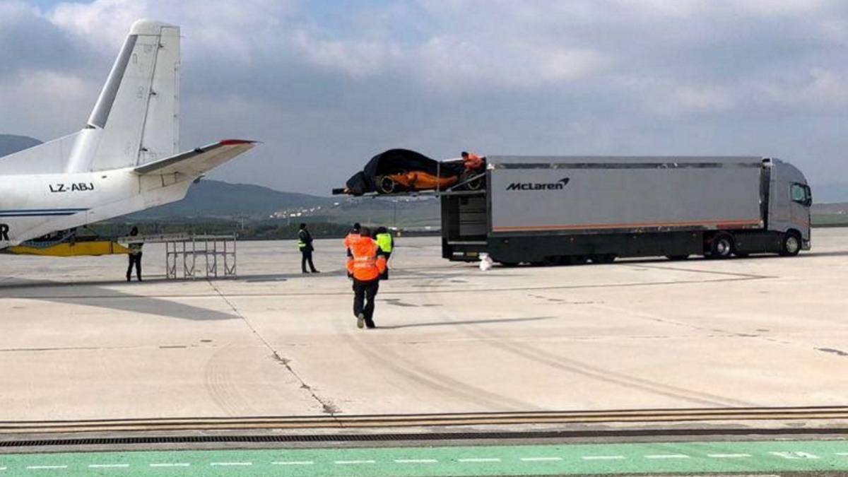 Durante el miércoles, fueron varias las fotos que aparecieron en las redes sociales mostrando camiones de McLaren y de Renault transitando por carreteras españoles con destino a la pista situada a solo 30 kilómetros de Logroño. Y para abrir apetito, los de Woking han mostrado la etiqueta de su chasis número uno pegada en el cockpit. Pero la verdadera sorpresa llegó un poco más tarde… Alguien que estaba en el aeropuerto de Pamplona pilló infraganti a los miembros del equipo cargando el coche del avión al camión y ¡le fotografíó!