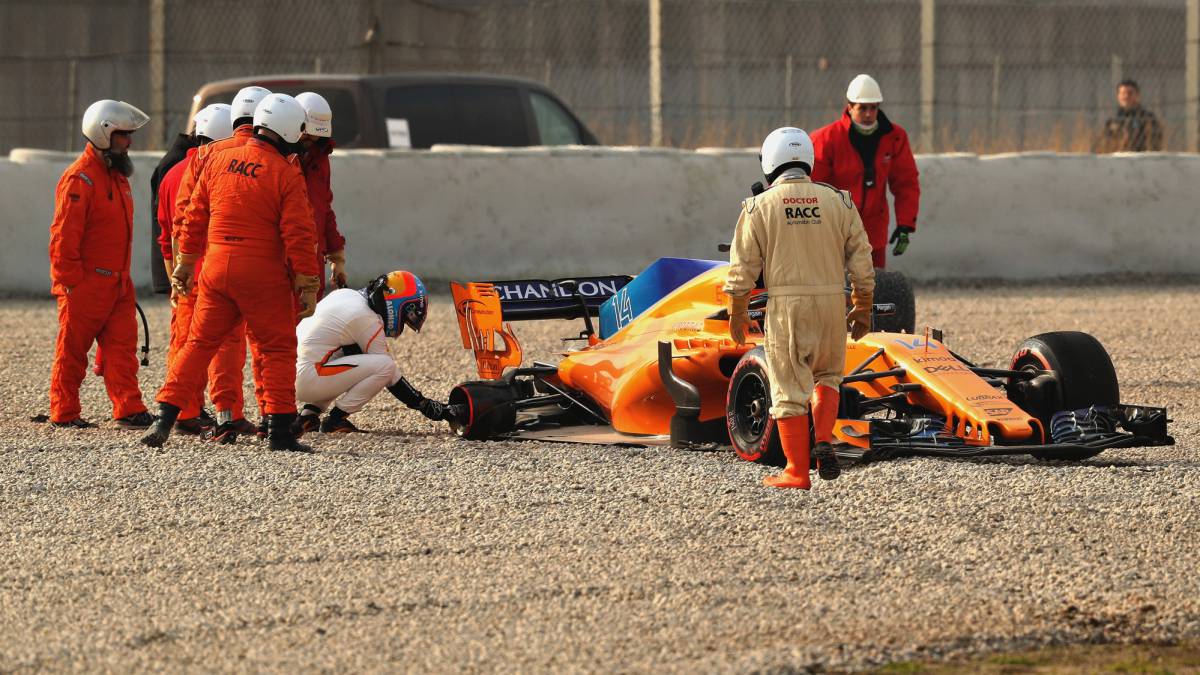 A las 9:12 salía el asturiano con su McLaren Renault por primera vez, no terminó la vuelta como es norma y después algo más de veinte minutos más tarde regresó al asfalto. Entonces comenzó a rodar con normalidad, con buen sonido, con velocidad… hasta que se salió en la última curva previa a meta por ese problema con la rueda. “He perdido un neumático”, dijo el piloto español. En estos momentos en McLaren los mecánicos ya están solucionando el problema.