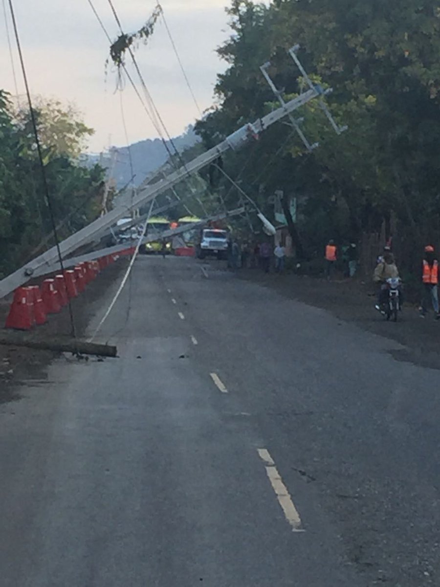Caída de postes del tendido eléctrico afecta tránsito carretera Navarrete-Puerto Plata