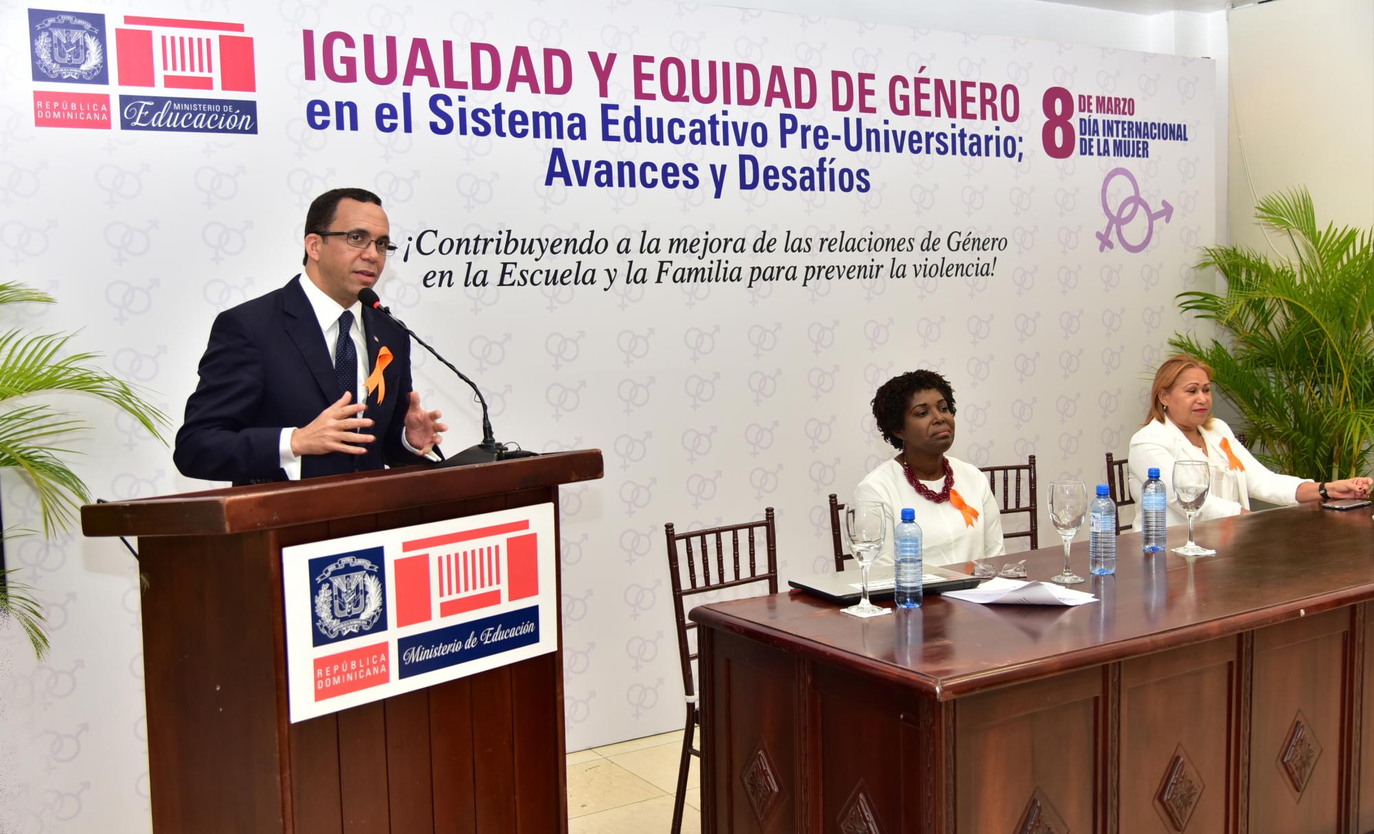 SANTO DOMINGO. El ministro Andrés Navarro afirmó hoy que el respeto a los derechos de la mujer, la equidad y la igualdad de género son males estructurales que deben ser enfrentados desde las escuelas, con el concurso de los docentes, las familias y de las instituciones que trabajan alrededor de esos temas de tanta profundidad y preocupación.