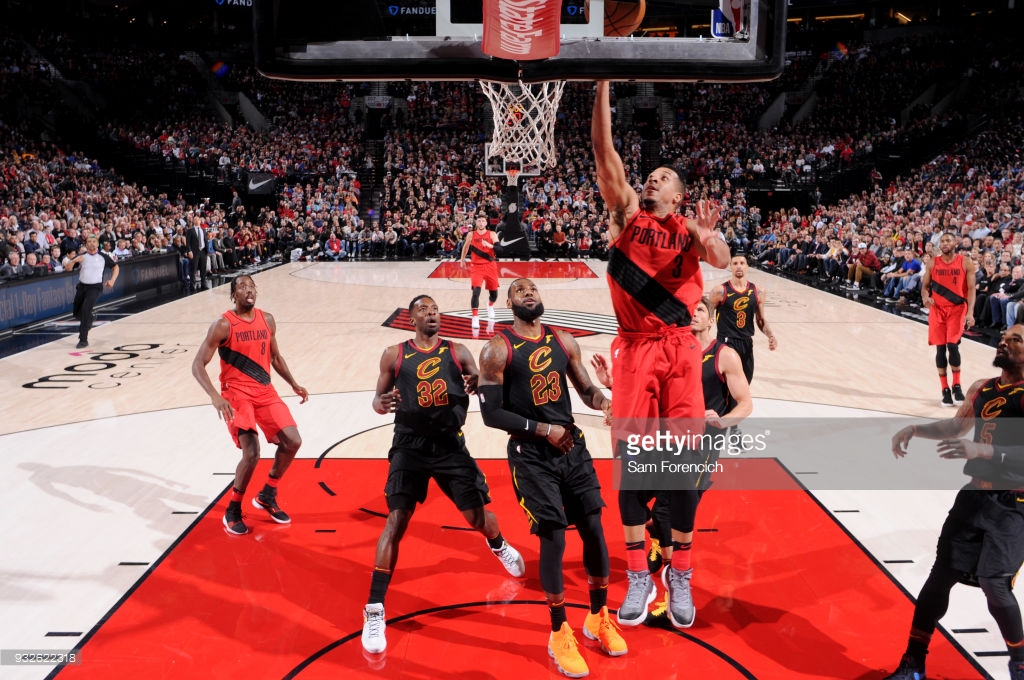 LeBron James sumó 35 tantos, incluidos dos con una volcada de antología en el primer periodo. La clavada monumental dejó aturdidos momentáneamente a los espectadores en el Moda Center.
