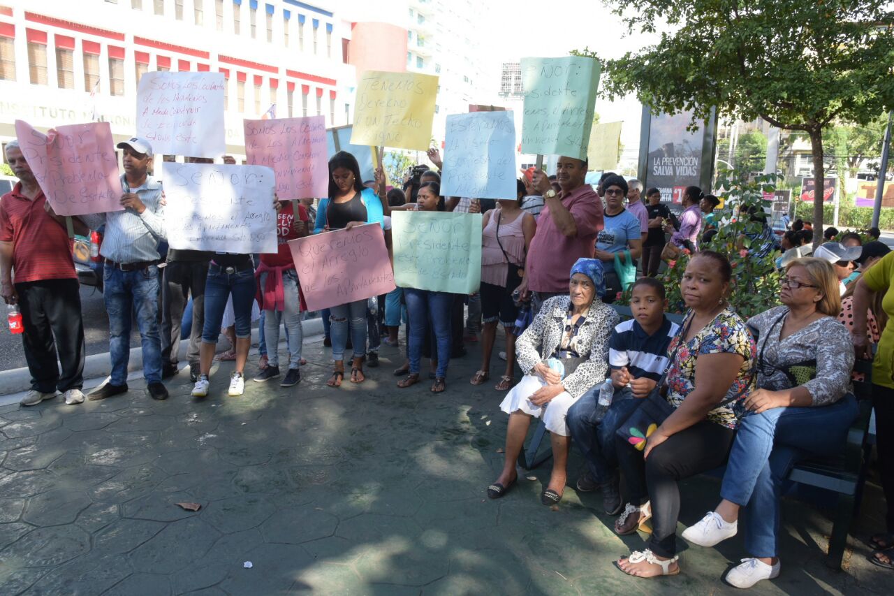 SANTO DOMINGO. Moradores de los edificios conocidos como “Los Invasores”, en Invivienda Santo Domingo, protestaron hoy frente a las oficinas del Instituto Nacional de la Vivienda (INVI) para reclaman que sean terminadas los apartamentos que ocupan desde hace más de 30 años.