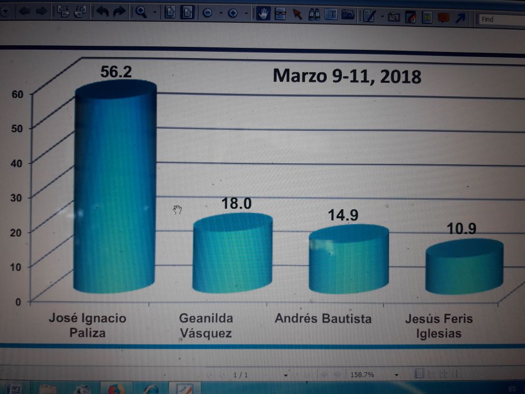 En febrero Paliza registró 50.5% frente al 18.9% de Geanilda, 15,8% de Bautista y 14.8% de Feris Iglesias.