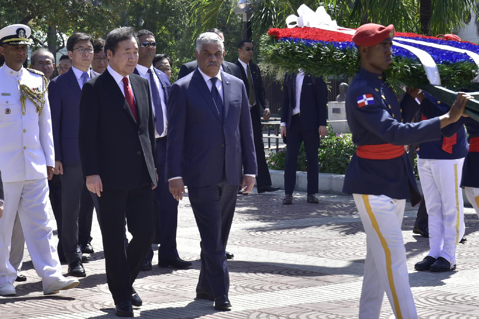 El primer ministro coreano Lee Nak-yeon inició su apretada agenda de tres días visitando un Centro de Atención Integral del Ministerio de la Mujer en el sector de Los Prados, luego a las 11:00 de la mañana depositó una ofrenda floral en el Altar de la Patria, y posteriormente sostuvo un encuentro privado con empresarios dominicanos.