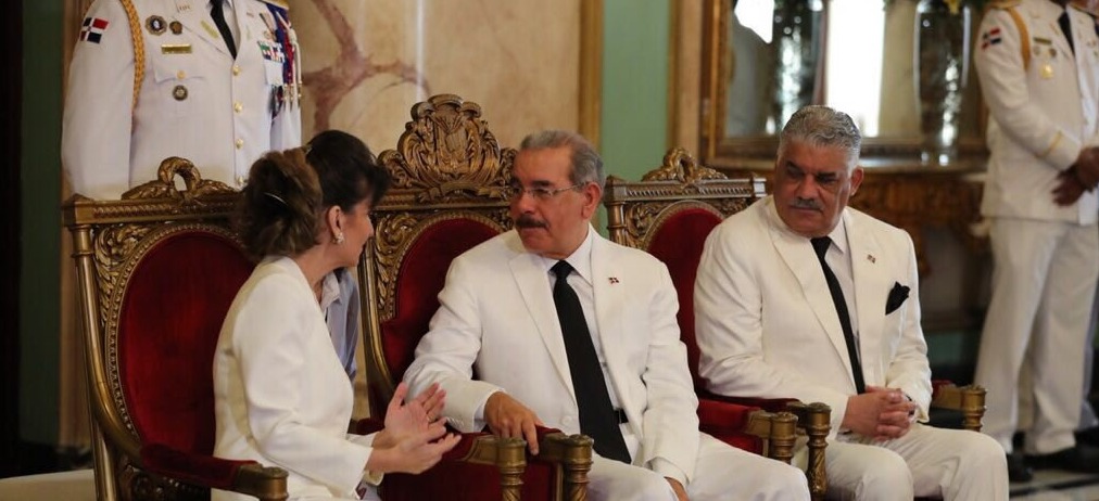 SANTO DOMINGO. El presidente Danilo Medina recibió las cartas credenciales de cinco nuevos embajadores en un acto que se llevó a cabo en el Salón de Embajadores del Palacio Nacional.