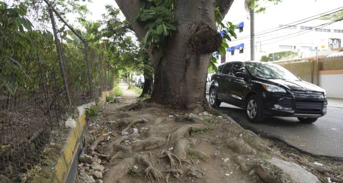 En la calle Lope de Vega esquina Padre Fantino Falco, desde hace años otro árbol brotó sus raíces y levantó la acera y no han sido pocos los tropezones de caminantes. En la calle Andrés Julio Aybar, entre la avenida Abraham Lincoln y la Lope de Vega una mata de Nin creció en medio de la acera y un poste del tendido eléctrico ocupan la mayor parte de la acera. En la avenida Anacaoba, frente al Mirador Sur, árboles de caoba están inclinados hacia la vía, a un diámetro que representan un peligro.