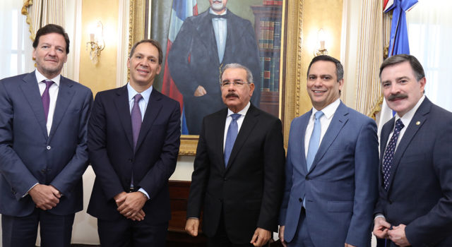 El presidente Danilo Medina recibió en su despacho al CEO de América Móvil, Daniel Hajj Aboumrad, quien realizó una visita de cortesía al Palacio Nacional, junto con el CFO de la corporación, Carlos García Moreno; y el presidente de Claro Dominicana, Rogelio Viesca.