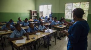 “Las implicaciones en términos de presupuesto, para garantizar eso, es que tengo que ir incorporando docentes –dice–, completándoles la tanda, y eso ha venido combinado con un esfuerzo de incrementar salarios, dignificar los salarios de los docentes. Ahora, ya no podemos seguir incrementando más salarios”.