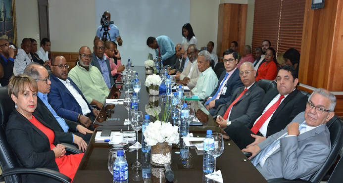 La representación del sector sindical estuvo encabezada por el presidente de la Confederación Nacional de la Unidad Sindical (CNUS), Rafael -Pepe- Abreu; el secretario general de la Confederación Nacional de Trabajadores Dominicanos (CNTD), Jacobo Ramos y el secretario general de la Confederación Autónoma Sindical Clasista (CASC), Gabriel del Río.