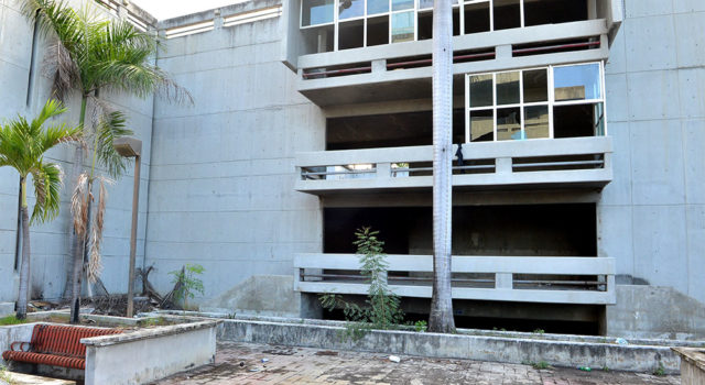Santiago. El Edificio Profesional, que hace prácticamente tres décadas construyó el gobierno con una inversión millonaria, se cae a pedazos debido al deterioro que le afecta por la falta de mantenimiento.