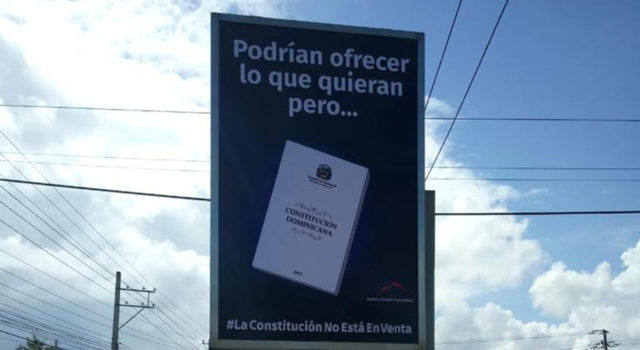 En tanto, en distintas puntos de la capital y Santiago han colocado vallas con mensajes alusivos al respeto a la Constitución de la República. Recientemente, ocho partidos políticos de oposición que forman parte del Foppredom expresaron su rechazo a modificar la Constitución para la reelección.