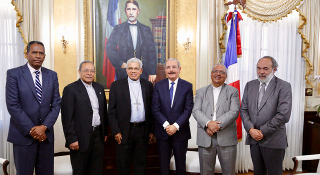 El presidente Danilo Medina recibió en su despacho del Palacio Nacional a monseñor Francisco Ozoria, arzobispo Metropolitano de Santo Domingo, acompañado de los obispos auxiliares, monseñor Ramón Benito Ángeles y monseñor Faustino Burgos.