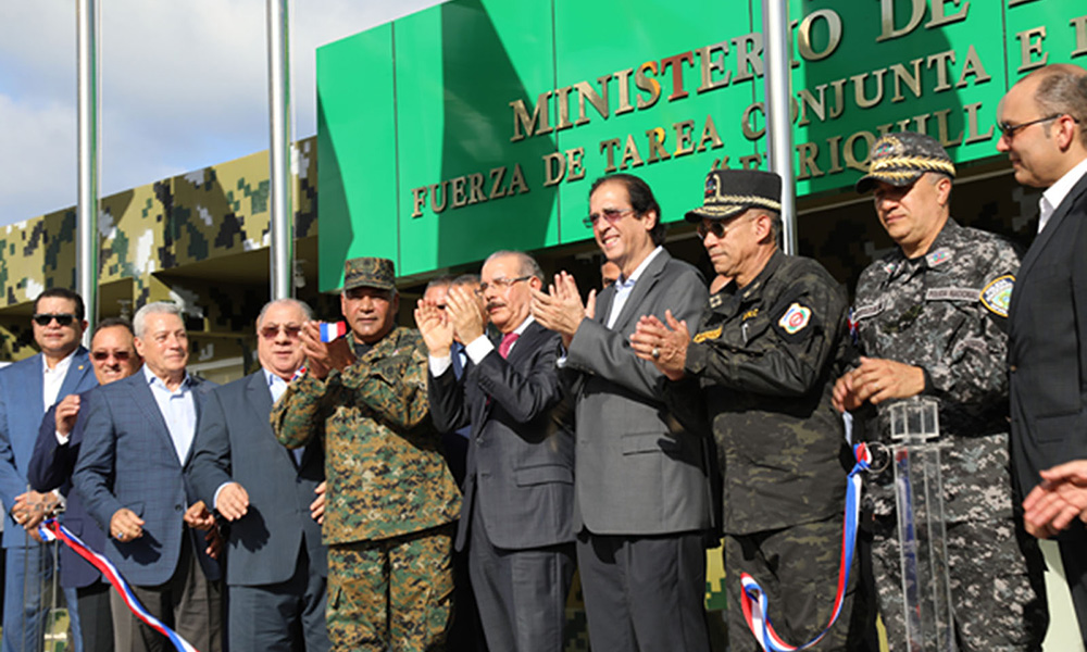 Barahona. El presidente Danilo Medina Sánchez dejó inauguradas las instalaciones que sirven de base a la “Fuerza de Tarea Interagencial Enriquillo”, en el municipio de Enriquillo, de esta provincia, la quinta unidad de su tipo creada para incrementar el control a la migración ilegal y las actividades ilícitas en la región fronteriza.