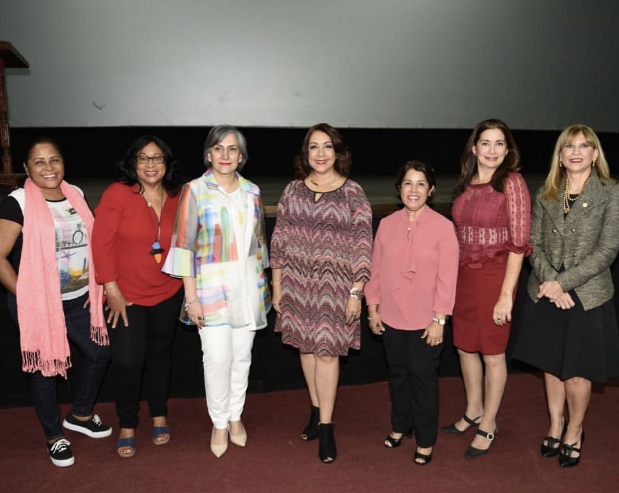 Previo a proyectarse “A la Deriva”, la cineasta Cury fue homenajeada por una comitiva de la Asociación de Juezas de la República Dominicana (AJURD) quienes le hicieron entrega de un hermoso ramo de flores.