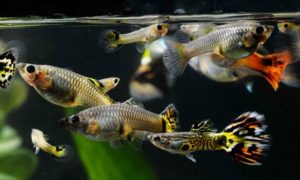 El guppy es un pez ovovivíparo de agua dulce procedente de Sudamérica que habita en zonas de corriente baja de ríos, lagos y charcas. Los guppys son peces de agua caliente y se recomienda criarlos en temperaturas entre los 22 °C y 28 °C. Los machos son más pequeños que las hembras y tienen modificada su aleta anal para usarla como un aparato reproductor alargado llamado gonopodio.