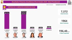 A las 4:33 minutos de la tarde la brecha se cierra en las precandidaturas presidenciales del Partido de la Liberación Dominicana (PLD), Gonzalo Castillo aventaja al expresidente Leonel Fernández al colocarse en 48.73% frente a un 46.63% de los votos emitidos.