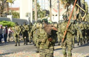 Este jueves, durante dos horas, el público disfrutó de la artillería militar y policial que cuenta el país para actuar ante eventos de peligro y desastres naturales. El despliegue empezó con los disparos del buque de la Base Naval. Luego, el Ejército, que también cumplió 176 años, mostró sus armamento: brigadas de cadetes de mujeres y hombres, exhibición de la evolución histórica de los uniformes del Ejército, los camuflados hombres pertenecientes a los Cazadores de Constanza, expertos en operaciones de montañas, y Tiburones de Puerto Plata.
