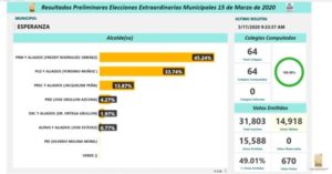 La Junta Central Electoral (JCE) informó hoy que 129 municipios y 148 distritos municipales del país concluyeron en un 100% el cómputo electoral de las Elecciones Extraordinarias Municipales celebradas el 15 de marzo, según los boletines presentados hasta las 8:00 de la mañana de este martes.