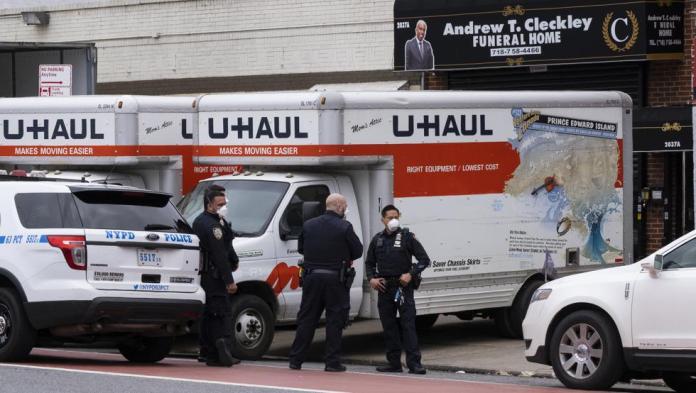 NUEVA YORK.- Dominicanos residentes a poca distancia de la funeraria Andrew T. Cleckley, ubicada en 2037-A de la Avenida Utica, en el sector de Flatlands, en Brooklyn, manifestaron que desde hacía dos días estaban percibiendo un mal olor desde varios camiones de U-Haul sin refrigerador.