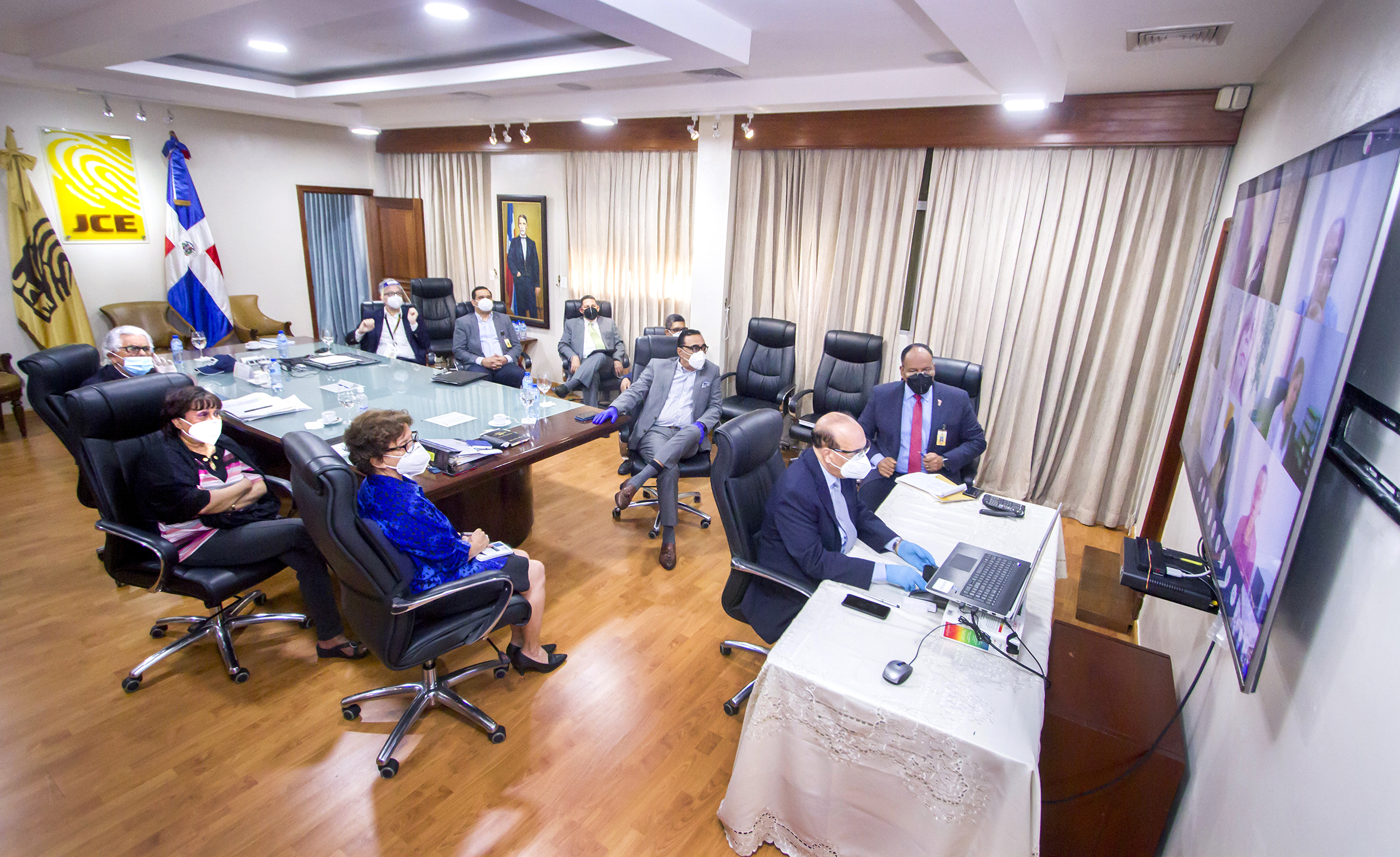 SANTO DOMINGO.- El Pleno de la Junta Central Electoral (JCE) sostuvo este miércoles una reunión virtual con los secretarios de las Oficinas de Coordinación de Logística Electoral del Exterior (OCLEE), a los fines de conocer la situación actualizada de los recintos electorales, el contacto con los aspirantes a miembro de mesa, así como la relación de las OCLEEs y los partidos políticos con las autoridades de cada una de esas ciudades o demarcaciones respecto de los avances de dichos trabajos para el montaje de las elecciones que tendrán lugar el próximo 5 de julio.