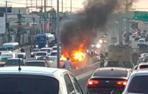 El pequeño tanque de GLP de una camioneta de las denominadas “plataneras” se incendió la mañana de este miércoles en el elevado de la avenida John F. Kennedy sobre la Núñez de Cáceres.