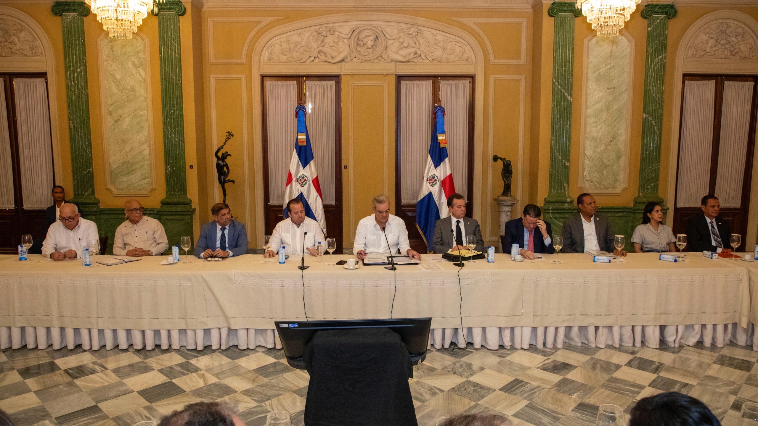 La reunión tuvo lugar en el Salón Verde durante un encuentro con las “Mesas de Precio y de Abastecimiento”, en donde el mandatario conversó con los diferentes sectores y con el encadenamiento del sector productivo a nivel nacional. Aquí estaban presentes importadores, almacenistas, comerciantes e industriales de la República Dominicana.