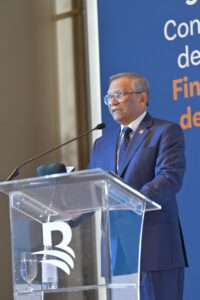 El presidente ejecutivo del Banco de Reservas, doctor Leonardo Aguilera, al hablar en el Tercer Congreso contra el Lavado de Activos y Financiamiento del Terrorismo que realiza la entidad financiera.