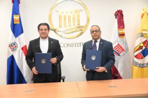 SANTO DOMINGO. El Tribunal Constitucional (TC) y la Pontificia Universidad Católica Madre y Maestra (PUCMM) firmaron este miércoles la renovación de un acuerdo de colaboración mediante el cual se comprometen a promover los valores de la Constitución y contribuir al fortalecimiento de la justicia constitucional a través de actividades conjuntas que coadyuven a la construcción de un Estado constitucional y democrático de derecho basado en los pilares establecidos en la Constitución de la República.