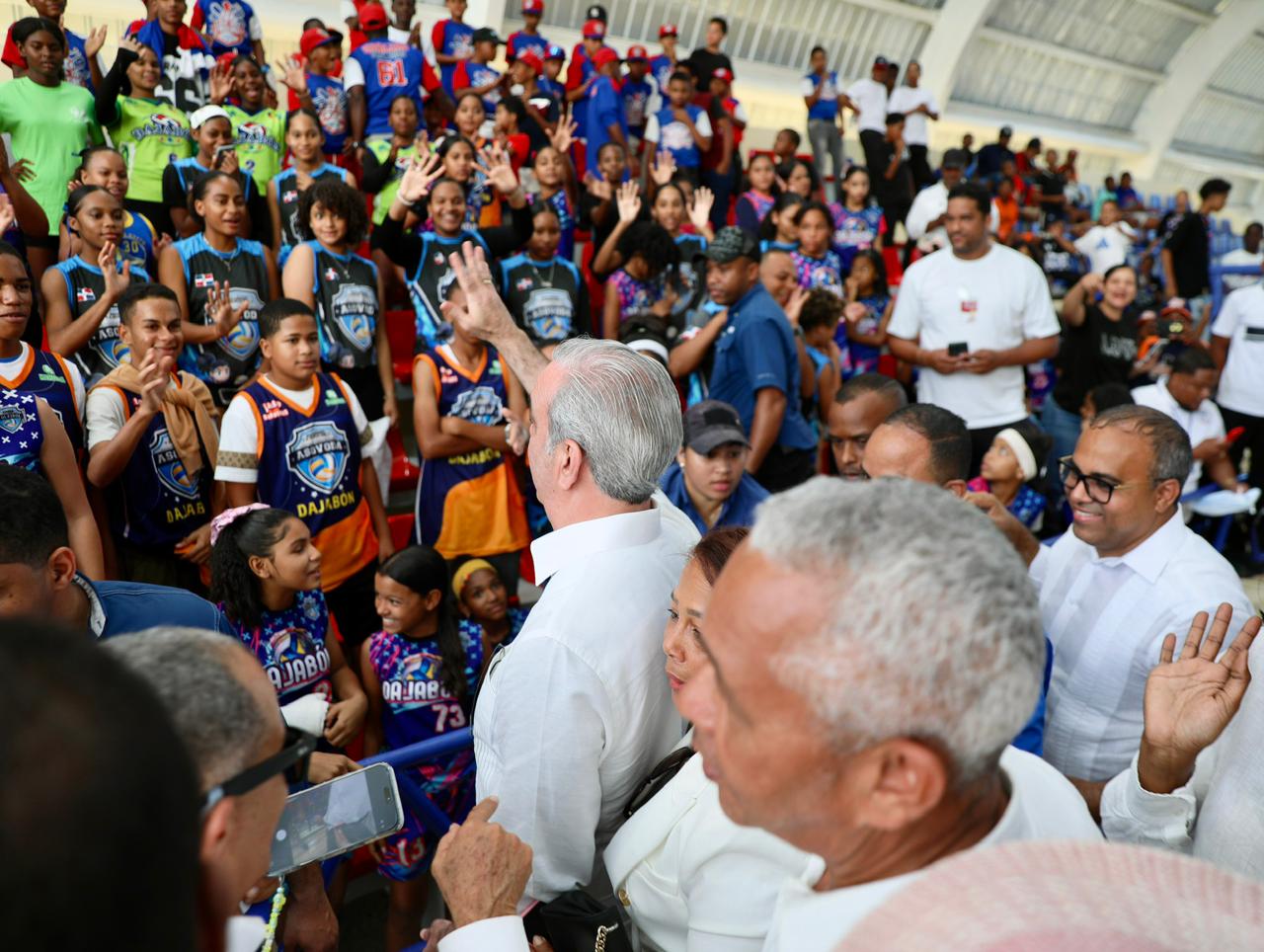 *Dajabón. –* Este domingo, como parte de su agenda de trabajo en esta provincia fronteriza, el presidente Luis Abinader encabezó la inauguración del remozamiento del Polideportivo Dajabón y dejó entregadas la nueva cancha de voleibol y la nueva Casa Club, un conjunto de obras orientadas a fortalecer el deporte, la convivencia y la formación en valores de la niñez y la juventud de la zona.