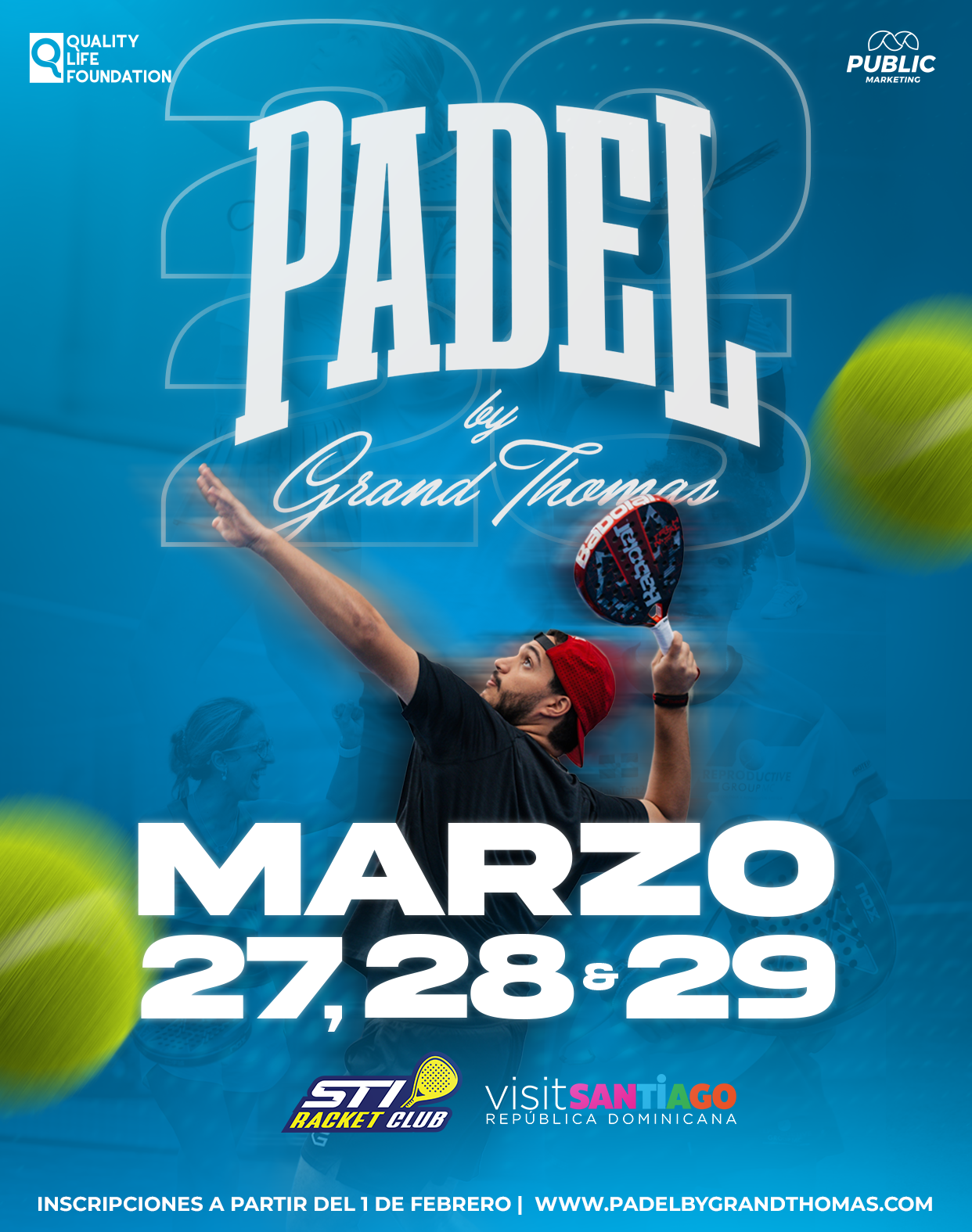 Haime Thomas, presidente de Quality Life Foundations, informó que el torneo se jugará 27, 28 y 29 de marzo en STI Racket Club, complejo que otra vez será el punto de encuentro de intensas jornadas cargadas de energía, pasión y el mejor pádel de la región.