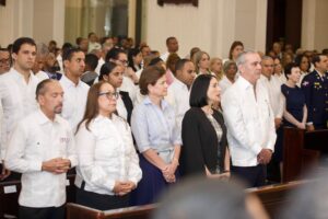 En la ceremonia religiosa se llevó a cabo en la Catedral Santiago Apóstol, el mandatario estuvo de la gobernadora de Santiago, Rosa Santos; del senador, Daniel Rivera; del alcalde Ulises Rodríguez y del presidente de la Comisión Permanente de Efemérides Patrias, Juan Pablo Uribe.