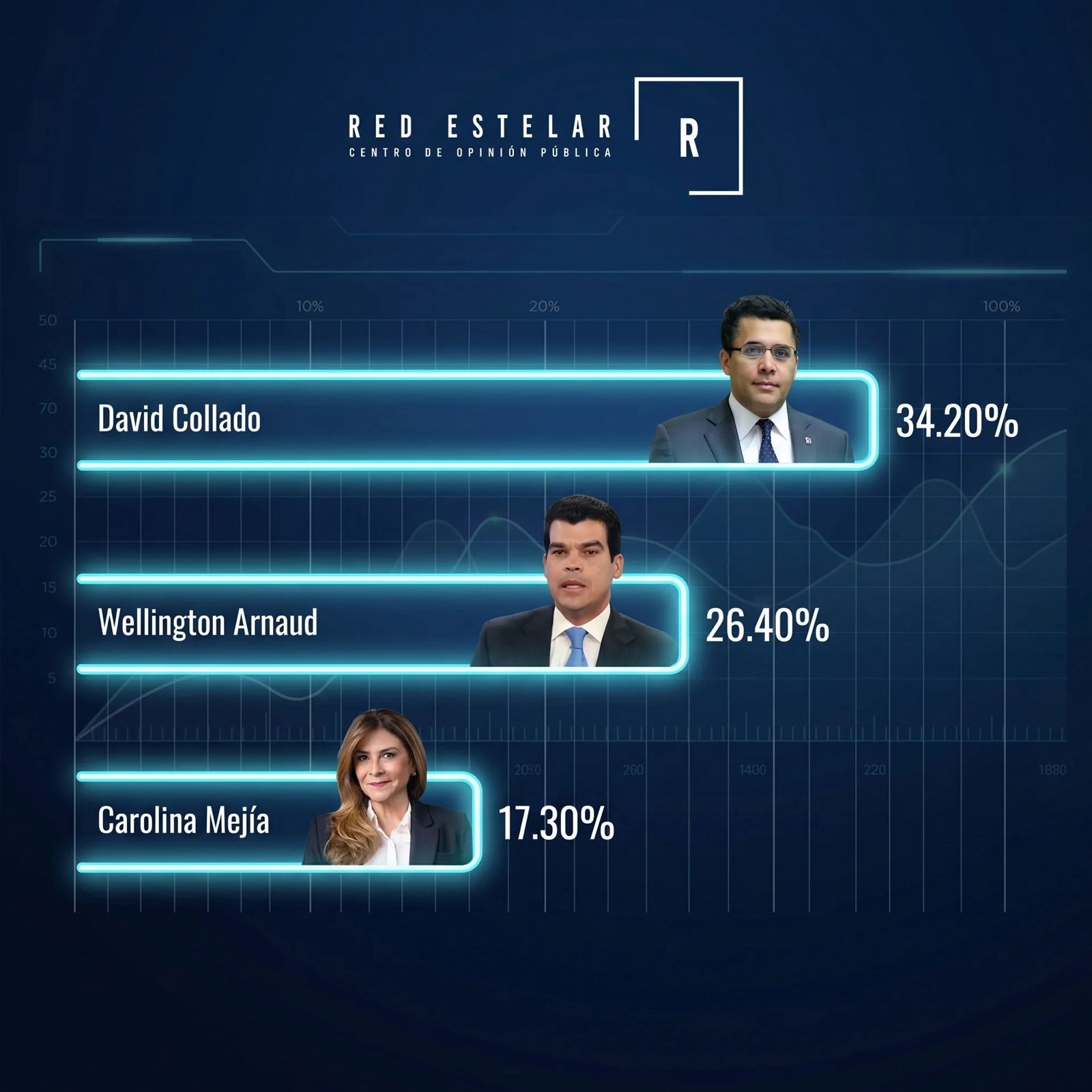 Los resultados de la más reciente encuesta nacional de Red Estelar, correspondiente a abril de 2026, colocan a Wellington Arnaud como una de las principales figuras dentro del Partido Revolucionario Moderno (PRM), en momentos en que el dirigente reafirma su confianza en ganar la convención interna de la organización.