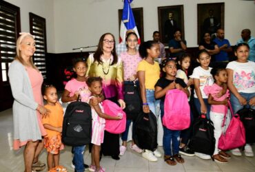 Gobernadora Rosa Santos comparte con niños de Santiago y entrega útiles escolares