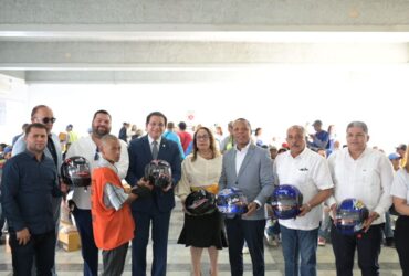 Senador Daniel Rivera entrega 300 cascos protectores a motoristas de Santiago